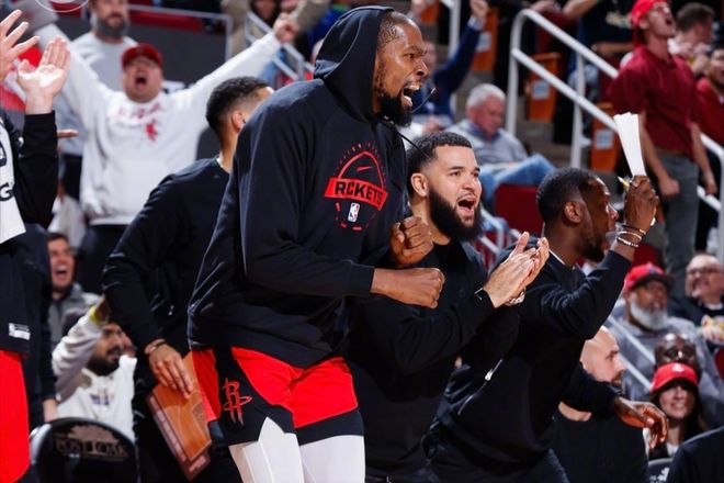 所以易边再战,我们看到了火箭队开始在防守端发力,一波8-0的进攻高潮直接完成反超,再次掌握场上主动权。然后两队一直鏖战到关键时刻,比分交替领先。不过最后时刻的剧情,出乎所有人的意料。最后1分半钟的时间,快船队落后5分,哈登抢时间强行出手三分,结果三不沾。好在后面快船队再次得到机会,将比分缩小到3分,一个进攻回合!然后哈登将功补过,接到巴图姆传球三分抬手就有,两队打平!这个时候,杜兰特仍然没有站出来,因为似乎不需要他。谢泼德虽然三分不中,但申京和阿门在内线疯狂冲击篮板,后者高高跃起补篮打进,还有罚球!